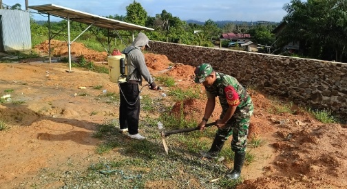 JEJAKKHATULISTIWA.CO.ID, Kutai Timur- Personel Koramil 0909-05 Muara Bengkal di pimpin langsung Babinsa Himba Lestari Kecamatan Batu Ampar Serda Kadek Sudiatmika dan beberapa personel lainnya pelopori kegiatan gotong royong pembersihan Masjid Ar Taqwa di RT 5 Desa Himba Lestari, Kecamatan Batu Ampar Kabupaten Kutai Timur.